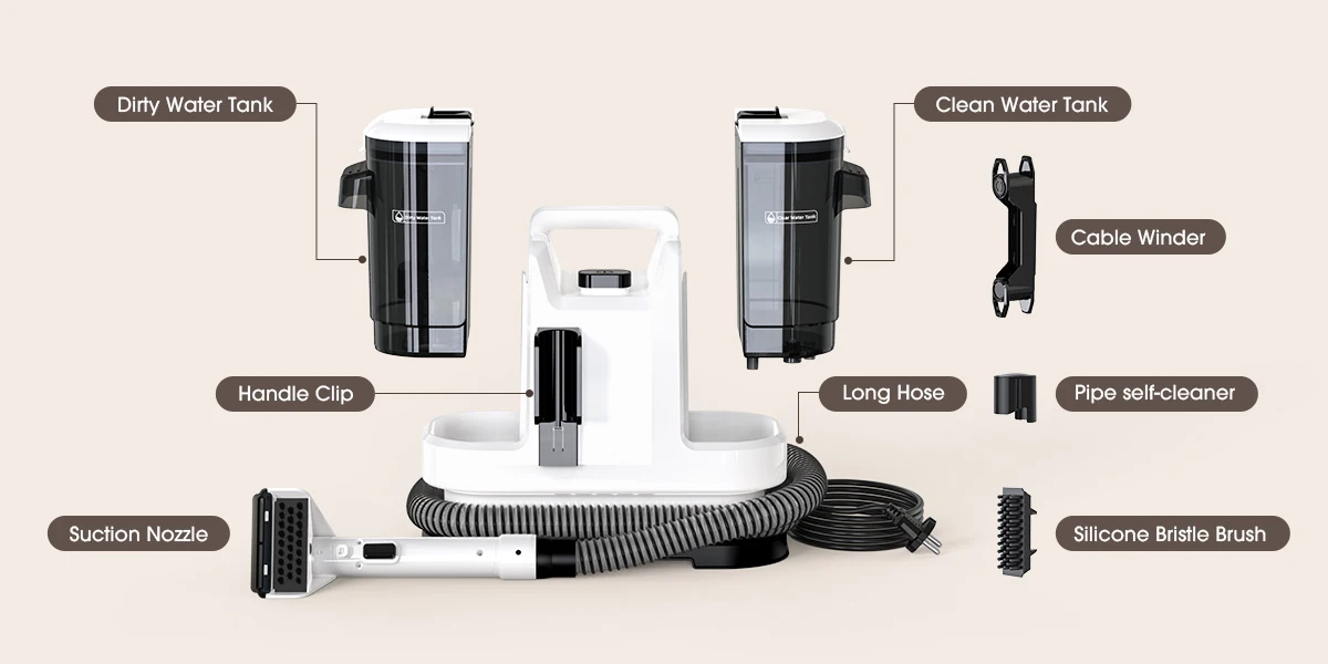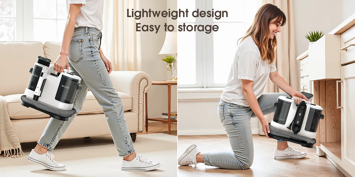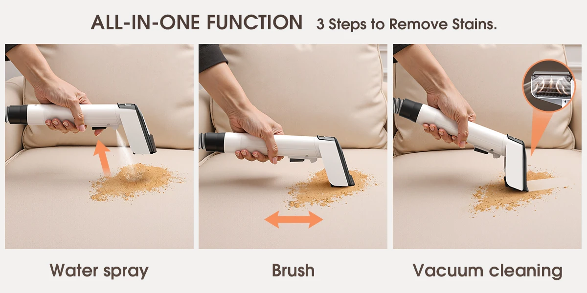 All – in – one function: evaporate, brush, vacuum. When coffee spills on the sofa during a work – from – home session, or mud tracks the sofa after outdoor play, it simplifies cleanup. 3 steps to erase stains, saving your post – party or chaotic weekday hassle, restoring surfaces in minutes.